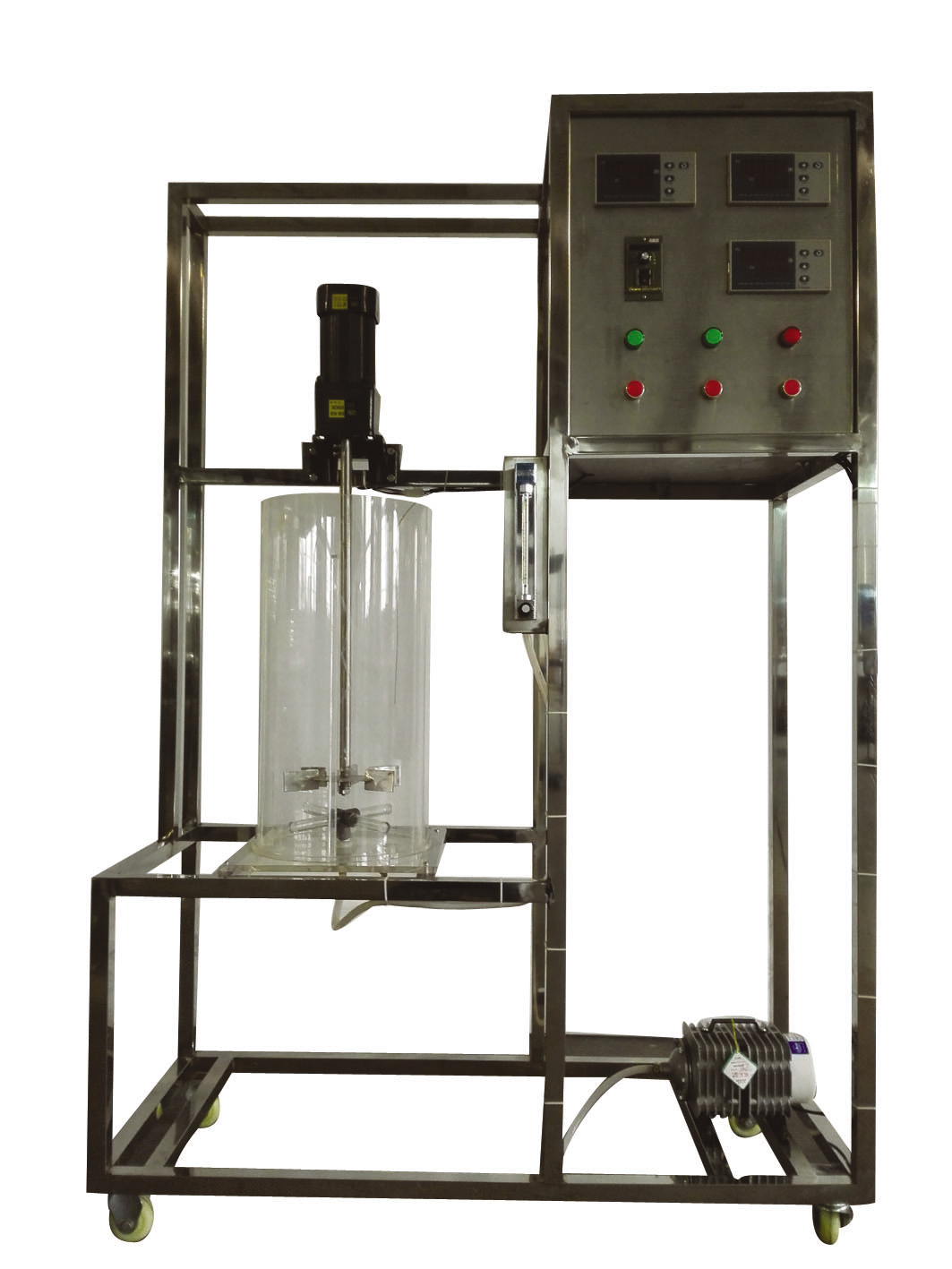 1、有機玻璃攪拌釜:內(nèi)徑φ288mm,釜內(nèi)裝有四塊擋板,攪拌槳采用六葉直葉式渦輪槳,槳下設(shè)有圓形氣體分布器。