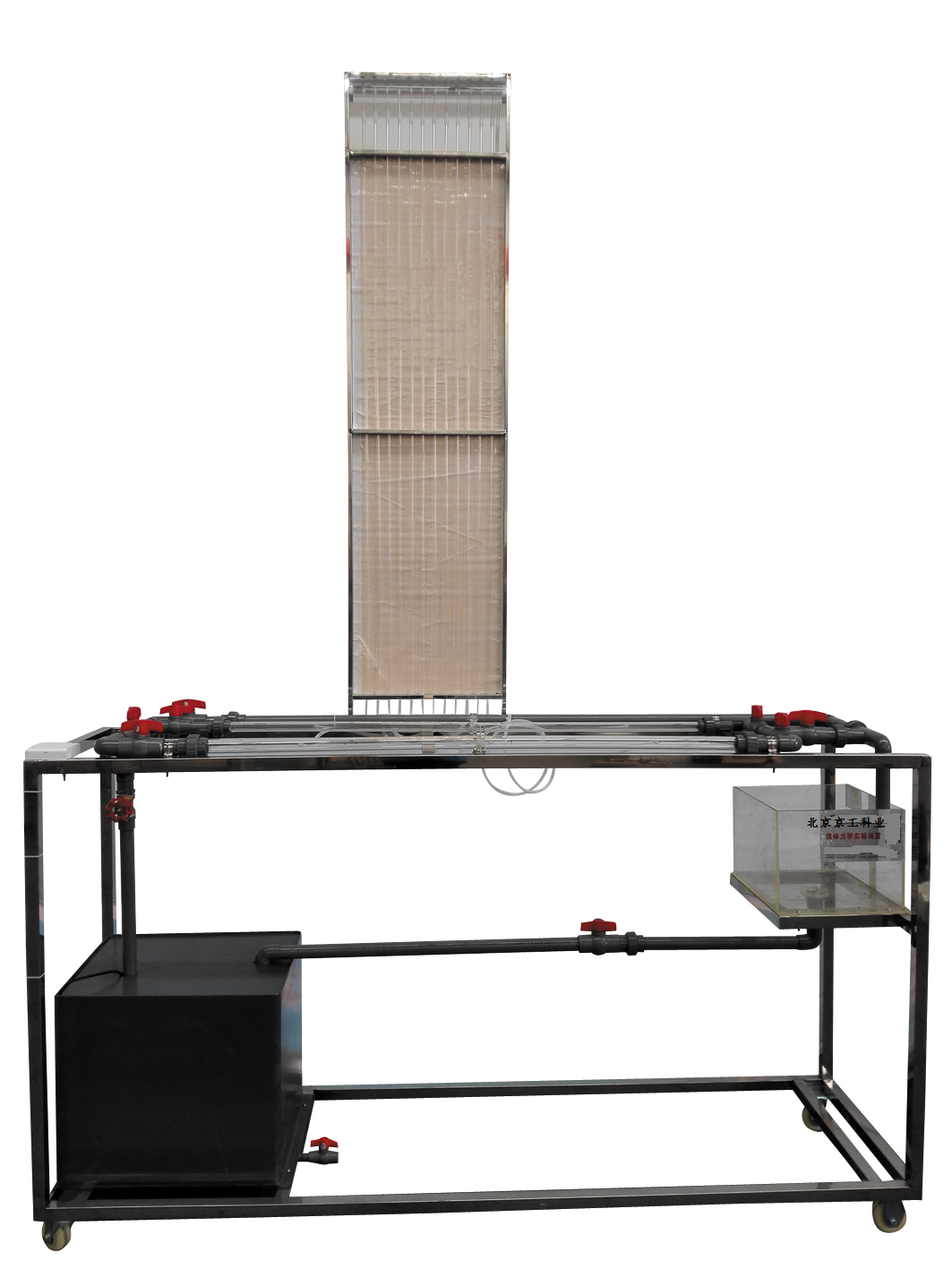 水泵、測(cè)速管、實(shí)驗(yàn)管道、蓄水箱、計(jì)量槽、秒表、刻度標(biāo)尺、閥門(mén)、測(cè)壓管、自循環(huán)裝置、不銹鋼框架。