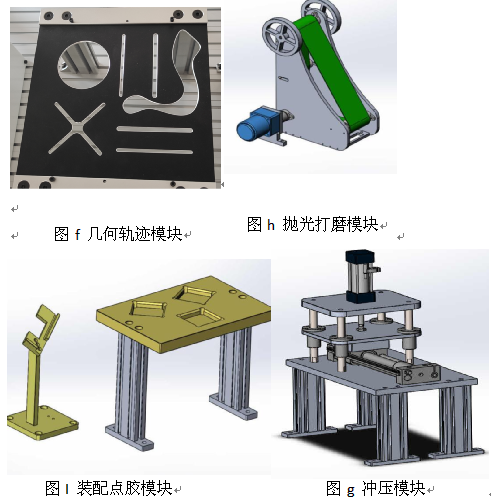 ( 2 ) . 此基礎(chǔ)平臺主要完成以下工作:來料、輸送、碼垛、分揀、裝配、檢測等,并搭載了 TCP 校點模塊、焊接 ( 涂膠 ) 軌跡模擬模塊。