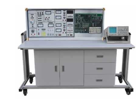 一桌為二座,桌面中央設(shè)置通用電路插板,元件盒在其上接插成實(shí)驗(yàn)電路完成實(shí)驗(yàn)。桌子左右各有一個(gè)柜,柜中存放元器件、貯存板及電腦,中間上層放置鍵盤(pán)、下層抽屜存放工具、萬(wàn)用表、導(dǎo)線等。桌面尺寸:160×68cm。