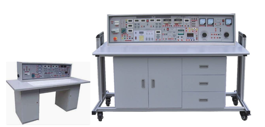 1、實(shí)驗(yàn)操作桌12張,一桌二座,操作桌桌面中央設(shè)置通用電路插板(尺寸:35×90cm),根據(jù)實(shí)驗(yàn)電路在其上任意拼插元件盒成實(shí)驗(yàn)電路。元件盒盒體透明直觀,內(nèi)裝元件一目了然,盒蓋印有元件符號(hào),線條清晰美觀,盒蓋與盒體采用壓卡式結(jié)構(gòu)、維修拆裝更換方便。每張操作桌配有一粒膠皮板,保護(hù)通用電路插板桌面(如需要在桌上放置電動(dòng)機(jī)、焊接等)。實(shí)驗(yàn)操作桌下部有二只元件儲(chǔ)存柜,放置實(shí)驗(yàn)元器件及儲(chǔ)存板。