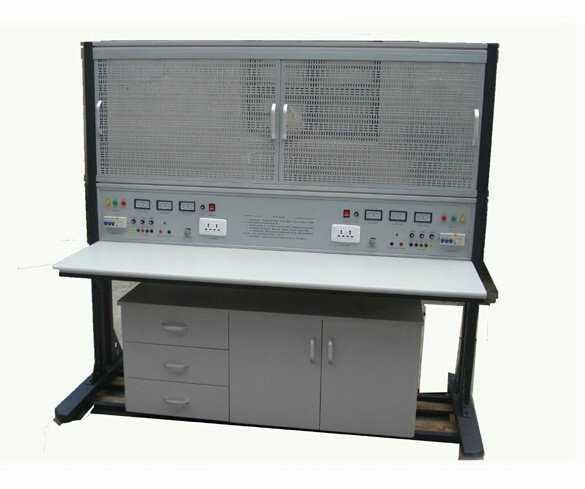 1、以30mm×30mm成型方鋼作為設(shè)備主要框架材料;實(shí)訓(xùn)屏、地盤采用焊接連接、關(guān)鍵部位采用三角筋用內(nèi)六角螺釘加固連接,表面經(jīng)高溫噴塑處理,美觀大方且有效起到防銹絕緣的作用;由兩條35mm×35mm鋁合金型材及滑槽組成網(wǎng)孔板固定機(jī)構(gòu);固定機(jī)構(gòu)的下方每面是鐵制雙工位電源箱,每工位電源箱的布局依次為電源保護(hù)裝置、電源指示裝置、電源輸出;