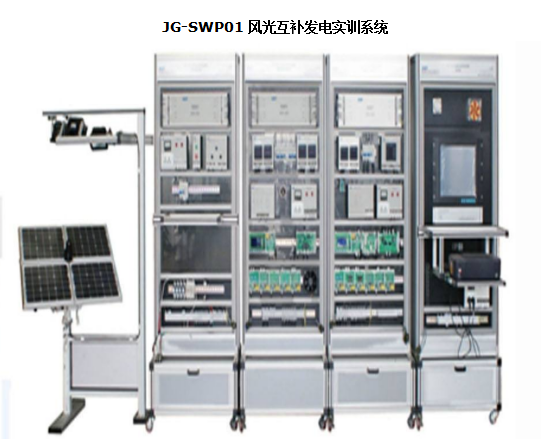 JG-SWP01風光互補發(fā)電實訓系統(tǒng)主要由光伏供電裝置、風力供電系統(tǒng)、逆變與負載系統(tǒng)、監(jiān)控系統(tǒng)組成,