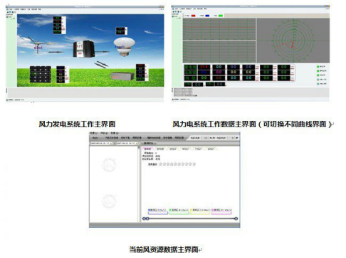 顯示內(nèi)容:蓄電池電壓、風機電壓、光伏電壓、風機電流、光伏電流、風機功率、光伏功率,能量模擬圖,當前風速(米/秒),當前風向(度),當前風力資源平估。 ?