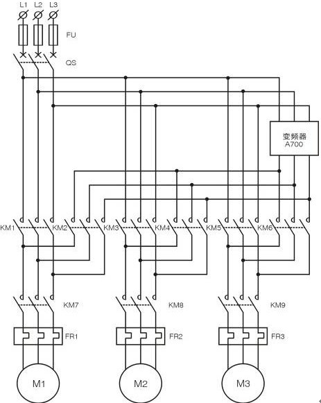 A700:變頻調(diào)速器FR1、FR2、FR3:熱繼電器