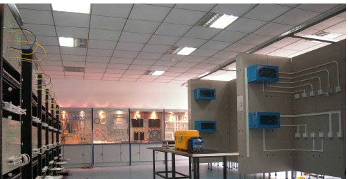 模擬CD和建筑群子系統(tǒng),包含中心設備間和干線兩個部分,是實訓室的有源交換設備和無源布線系統(tǒng)匯聚的場所,提供布線系統(tǒng)展示和運作的功能;干線由語音和數(shù)據(jù)鏈路組成,結(jié)構上即由設備間通過橋架連接至綜合布線實訓操作臺或工程項目模擬建筑的樓宇設備間BD,并預留足夠的長度供學生作主干端接訓練。