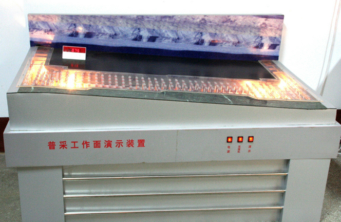 普采工作面生產系統(tǒng)及安全演示裝置電動演示普采工作面開采生產工藝過程,通過機械傳動技術顯示采煤機、轉載機、刮板機、皮帶運輸工藝流程,單體液壓支柱,交接頂梁的布置。
