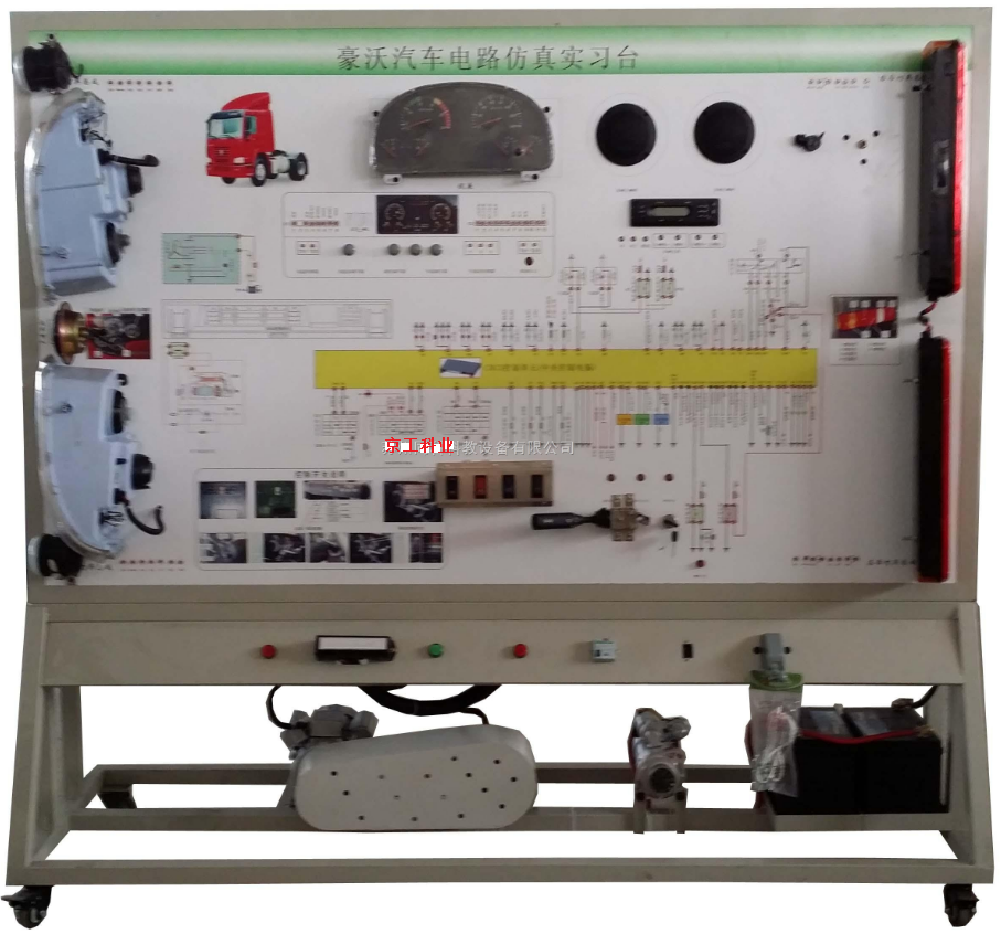 豪沃汽車電路仿真實(shí)習(xí)臺(tái)采用全新原整車電器實(shí)物為基礎(chǔ),充分展示汽車儀表系統(tǒng)、燈光系統(tǒng)、雨刮系統(tǒng)、喇叭系統(tǒng)、發(fā)動(dòng)機(jī)電器系統(tǒng)、起動(dòng)系統(tǒng)和充電系統(tǒng)等汽車電器各系統(tǒng)的組成結(jié)構(gòu)和工作過(guò)程。