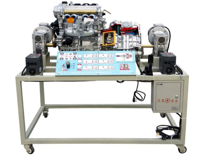 豐田普銳斯混聯(lián)式混合動(dòng)力系統(tǒng)(包括:發(fā)動(dòng)機(jī)、發(fā)電機(jī)和電動(dòng)機(jī)等)總成,三相齒輪減速感應(yīng)電機(jī),三相漏電保護(hù)開關(guān),移動(dòng)臺(tái)架(帶自鎖腳輪裝置).