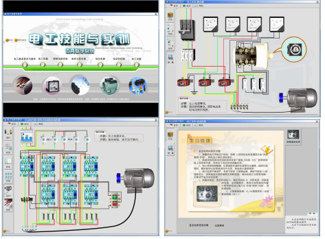 8. 電機控制電路 :異步電動機、連續(xù)控制、雙重聯(lián)鎖、正反轉控制、生產機械、行程控制、Y-Δ降壓、啟動控制、手動順序、起動控制、反接制動控制、繞線式電動機、直流電機、調速控制、接線實操、仿真實訓。包括元件介紹、電路原理語音視頻講解、仿真實訓配盤接線、仿真運行、模擬考核、設置故障、查找排除故障、并附有答案和操作提示。