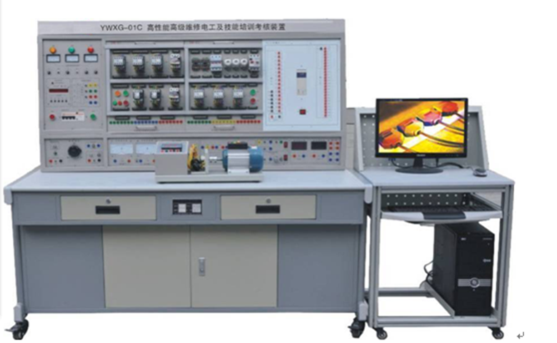 JG-YWXG-01C 型 高性能高級維修電工及技能培訓考核實訓裝置 是根據(jù)勞動和社會保障部頒發(fā)的 " 工人等級標準 " 和 " 職業(yè)技能鑒定 " 的要求而設(shè)計的,它適用于《初級維修電工》、《中級維修電工》和《高級維修電工》教材要求的電氣控制線路,通過裝置配備的 PLC 可編程控制器和變頻調(diào)速器及相應實訓模塊的訓練,快速掌握課程要求的實際應用技術(shù)和操作技能,具有針對性、實用性、科學性和先進性,它能滿足中、高級維修電工考核大綱的要求,是各勞動職業(yè)技能鑒定部門、大中專院校、技校中、高級維修電工技能考核的理想設(shè)備。