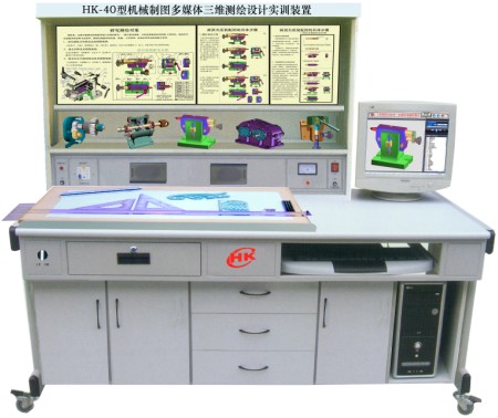 ,適用于《技術(shù)制圖》、《機械制圖》、《工程制圖》等課程。 《機械制圖》是高職高專機械類專業(yè)學(xué)生必修的一門專業(yè)技術(shù)基礎(chǔ)課。 本機械制圖實訓(xùn)裝置 是培養(yǎng)學(xué)生正確識讀和繪制機械圖樣,增強學(xué)生工程基礎(chǔ)能力,實踐性較強的應(yīng)用型設(shè)備。同時,借助于計算機圖形學(xué)技術(shù)和多媒體技術(shù), 采用育文機械制圖多媒體軟件用電腦演示三維動態(tài)模型, 加強直觀性教學(xué),做到教學(xué)內(nèi)容直觀形象, , 提高學(xué)習(xí)興趣、降低學(xué)習(xí)難度。 實訓(xùn)裝置還采用繪圖板來畫圖,制圖板的上下升降采用電動控制;實訓(xùn)裝置采用 40 件模型和 40 塊模塊板說明供學(xué)生使用;模型和模塊板可隨課程內(nèi)容需要進行更換操作。