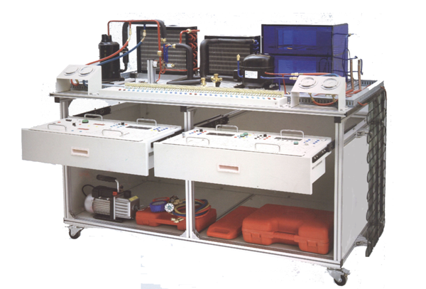 1. 裝置采用模塊化設(shè)計,由導(dǎo)軌式鋁合金安裝平臺、空調(diào)系統(tǒng)、電冰箱系統(tǒng)、電氣控制系統(tǒng)等組成。