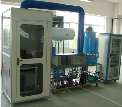 設(shè)備整體與實際中央空 調(diào)系統(tǒng)結(jié)構(gòu)相同,采用 開放式不銹鋼框架 結(jié)構(gòu),各部件布局合理操作方便。系統(tǒng) 由 制冷機組、冷卻水系統(tǒng)、冷凍水系統(tǒng)、制熱系統(tǒng)、空氣調(diào)節(jié)系統(tǒng)(風管組件)、模擬房間、電控柜、計算機等部分組成,并配有集水器、分水器、膨脹水箱。
