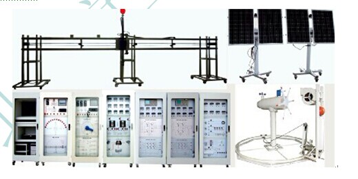 本系統(tǒng)由風力發(fā)電裝置和太陽能發(fā)電裝置兩部分組成,兩套裝置分別可以做風力發(fā)電實驗和太陽能發(fā)電實驗,然后在通過充電控制系統(tǒng)即可做風光互補實驗。本系統(tǒng)由風力發(fā)電裝置、太陽能發(fā)電裝置、模擬太陽控制系統(tǒng)、模擬風控制系統(tǒng)離網(wǎng)逆變系統(tǒng)、并網(wǎng)逆變系統(tǒng)、充電控制系統(tǒng)、負載系統(tǒng)和風光互補控制系統(tǒng)組成。