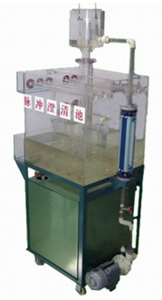 有機玻璃脈沖澄清池、進水管、放空管、水泵、配水箱、轉子流量計、連接管道和球閥、電控箱、不銹鋼臺架。