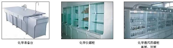 | 化學(xué)準(zhǔn)備室 (通風(fēng)化學(xué)藥品柜、單面柜5個、雙面柜5個、準(zhǔn)備臺1張、轉(zhuǎn)椅1張) |