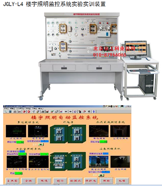 JGLY-L4 樓宇照明監(jiān)控系統(tǒng)實驗實訓(xùn)裝置 樓宇照明監(jiān)控系統(tǒng)軟件界面 ( 1 )裝置組成: 樓宇照明監(jiān)控系統(tǒng)實驗實訓(xùn)裝置,控制部分全部采用實物,控制對象采用仿真模型,整個實訓(xùn)裝置主要由 DDC 控制器、時鐘控制器、照度傳感器、動靜探測器、遙控器、仿真燈具、組態(tài)軟件、配置軟件、控制軟件、專用管理電腦等組成。 ( 2 )系統(tǒng)實訓(xùn)功能: 能進(jìn)行各種燈光照明系統(tǒng)操作演示、直接數(shù)字控制器( DDC )的操作與編程、時鐘控制的編程與操作、照度自動調(diào)節(jié)控制、動靜探測控制、區(qū)域場景控制、手動遙控器控制,系統(tǒng)軟件的組態(tài)、配置與控制,系統(tǒng)軟件的組態(tài)、配置與控制,線路的設(shè)計與連接、故障的設(shè)置、判斷及排除等實驗和實訓(xùn),并可與樓宇自控系列中其它設(shè)備聯(lián)網(wǎng)進(jìn)行各種綜合實訓(xùn)。 ( 3 )系統(tǒng)技術(shù)指示: a 、工作電壓:單相三線 220V±5% 50Hz b 、整機(jī)容量:< 300W c 、外形尺寸: 1500mm×700mm×1800mm d 、安全保護(hù):具有漏電自動保護(hù)裝置 e 、故障設(shè)置:具有故障設(shè)置系統(tǒng) ( 4 )可以做的實訓(xùn)項目: 實訓(xùn)項目一:公共區(qū)域照明控制與操作實訓(xùn) 實訓(xùn)項目二:辦公室照度自動調(diào)節(jié)控制與操作實訓(xùn) 實訓(xùn)項目三:景觀照明控制與操作實訓(xùn) 實訓(xùn)項目四:情景照明控制與操作實訓(xùn) 實訓(xùn)項目五:應(yīng)急照明控制與操作實訓(xùn) 實訓(xùn)項目六:手動遙控器控制與操作實訓(xùn) 實訓(xùn)項目七:線路故障的判斷與處理 實訓(xùn)項目八:設(shè)備故障的判斷與處理 實訓(xùn)項目九:設(shè)計并安裝一個簡易應(yīng)用系統(tǒng) 實訓(xùn)項目十:組態(tài)軟件設(shè)計實訓(xùn)項目