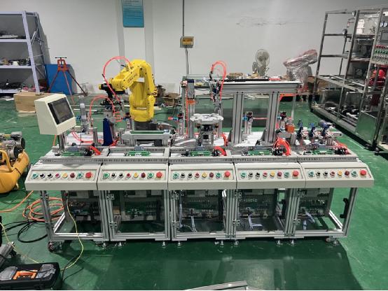 系統(tǒng)包含了新世達(dá)機(jī)器人、機(jī)電一體化專業(yè)中的氣動、電機(jī)驅(qū)動與控制、 PLC 、變頻器、觸摸屏、傳感器等多種控制功能。