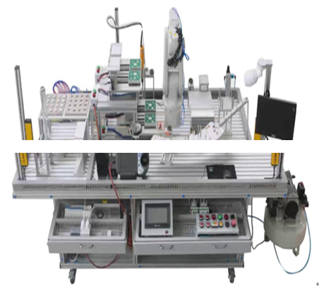 ( 1 )提供工作站啟動、停止、模式控制和急停按鈕,可實(shí)現(xiàn)對設(shè)備運(yùn)行操作,提供故障及設(shè)備運(yùn)行狀態(tài)指示燈,提供多個故障設(shè)置點(diǎn),可模擬不同情況下的故障,提供多個電路信號及氣路信號的快接插口。