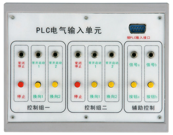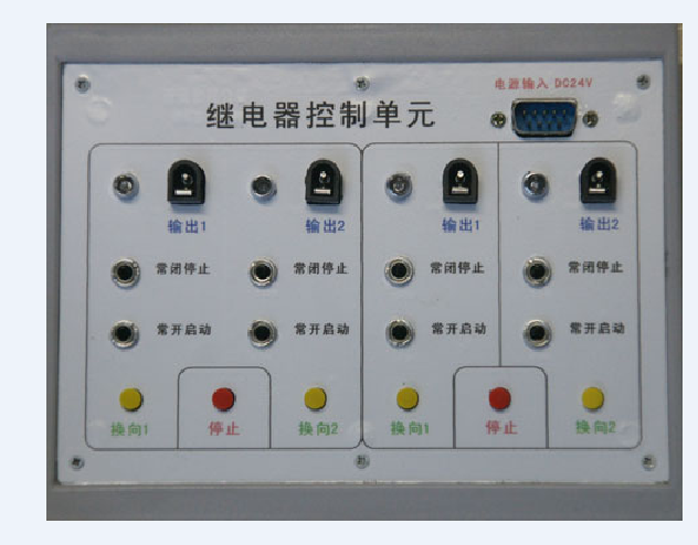 (4)輸入模塊:與PLC采用電纜9針232接口連接。連接后為PLC提供8路主令輸入信號(其中2路為常閉信號),及通過信號插孔為PLC提供自動控制信號。(如:行程開關(guān)位置信號等);輸出模塊:與PLC采用電纜9針232接口連接。通過輸出接口插孔控制電磁閥通斷;繼電器控制模塊:與電源模塊連接后,進行主令信號控制,及提供自動控制信號接口進行自動控制。通過輸出口插孔控制電磁閥通斷。