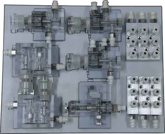 液壓實驗元件均為透明有機材料制成,透明直觀。便于了解掌握幾十種常用液壓元件的結(jié)構(gòu)、性能及用途。掌握幾十種基本實驗回路的工作過程及原理。實驗時,組裝實驗回路快捷、方便。
