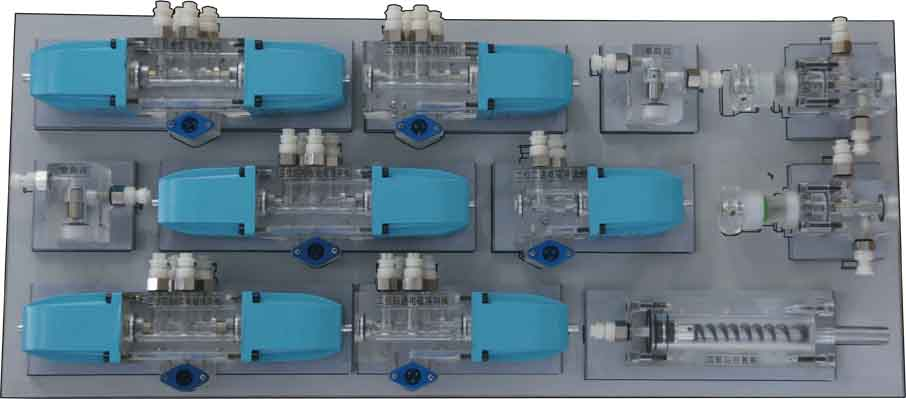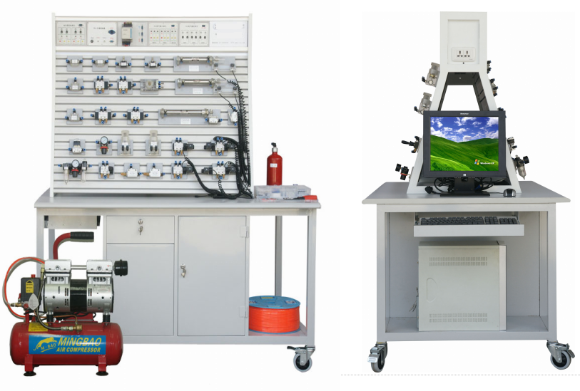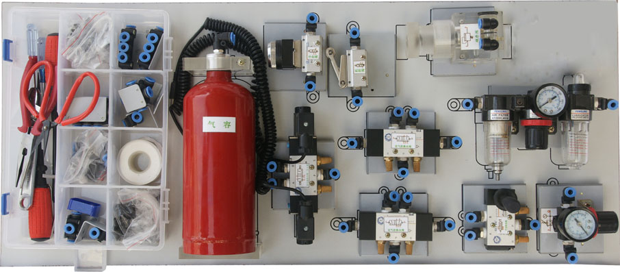 氣動面主要包括:梯形雙立面實驗臺、鐵質(zhì)實驗桌、氣動元件(20多種)、電器控制模塊(5只)、空氣壓縮機、元件固定配置板、工具及附件等。